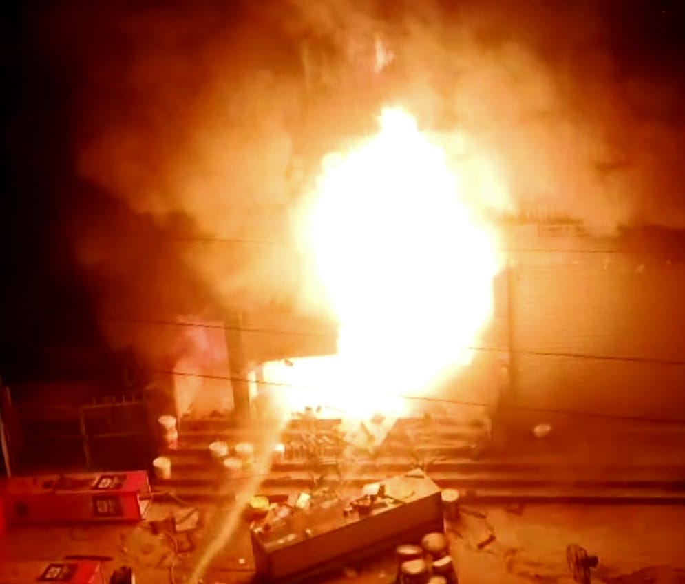 ऑयल पेंट दुकान गोदाम में इस भीषण आग से कलर के डिब्बे आदि धमकों के साथ फटने लगे और आस पास इसकी गूंज सुनाई दी। कलर और ऑयल पेंट के कारण ने विकराल रूप ले लिया था। आग की लपटें भी काफी दूर से दिखाई दे रही थी।