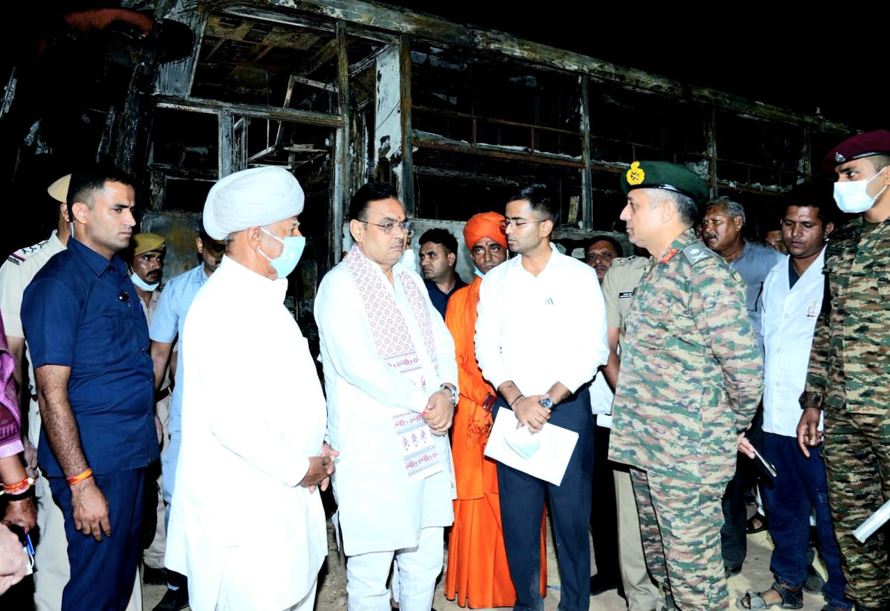 जैसलमेर बस हादसे पर मुख्यमंत्री भजनलाल शर्मा ने दुख व्यक्त किया है। मुख्यमंत्री ने कलेक्टर-एसपी से फोन पर बात कर पीड़ितों को हर संभव मदद के निर्देश दिए। बाद में वह स्वयं जैसलमेर पहुंचे। इसके बाद वे जोधपुर पहुंचे और सीधे महात्मा गांधी अस्पताल पहुंचे और घायलों की जानकारी ली। सीएम के साथ चिकित्सा मंत्री गजेंद्र सिंह खींवसर भी हैं। इसके साथ ही पूर्व सीएम अशोक गहलोत,डिप्टी सीएम दिया कुमारी,सचिन पायलट सहित कई नेताओं ने हादसे पर दुख जताया है।