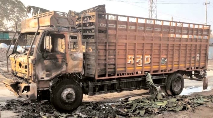 सारण नगर में केले से भरे ट्रक में लगी आग,जलकर कर खाक