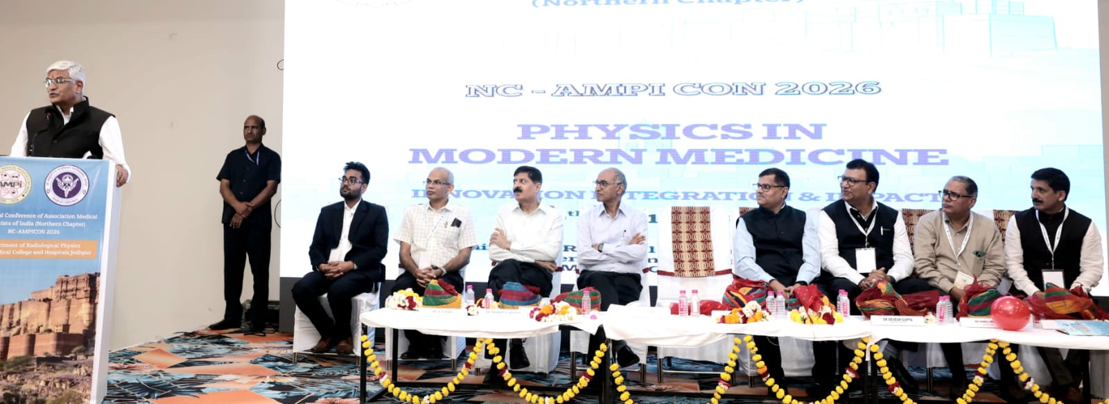 मुख्य अतिथि केंद्रीय मंत्री गजेंद्र सिंह शेखावत ने उन्नत भारत के सपनों को पूरा करने के प्रति सरकार की प्रतिबद्धता बताई और आर्टिफीसियल इंटेलीजेन्स का उपयोग करते हुए मेडिकल फ़ेसिलिटी को और उन्नत करने के लिए यंग फिजिसिस्ट को आव्हान किया।डिफेंस लैब के निदेशक वी.एस. शेरोन ने मेडिकल फिजिक्स का कैंसर ट्रीटमेंट में रोल बताया।