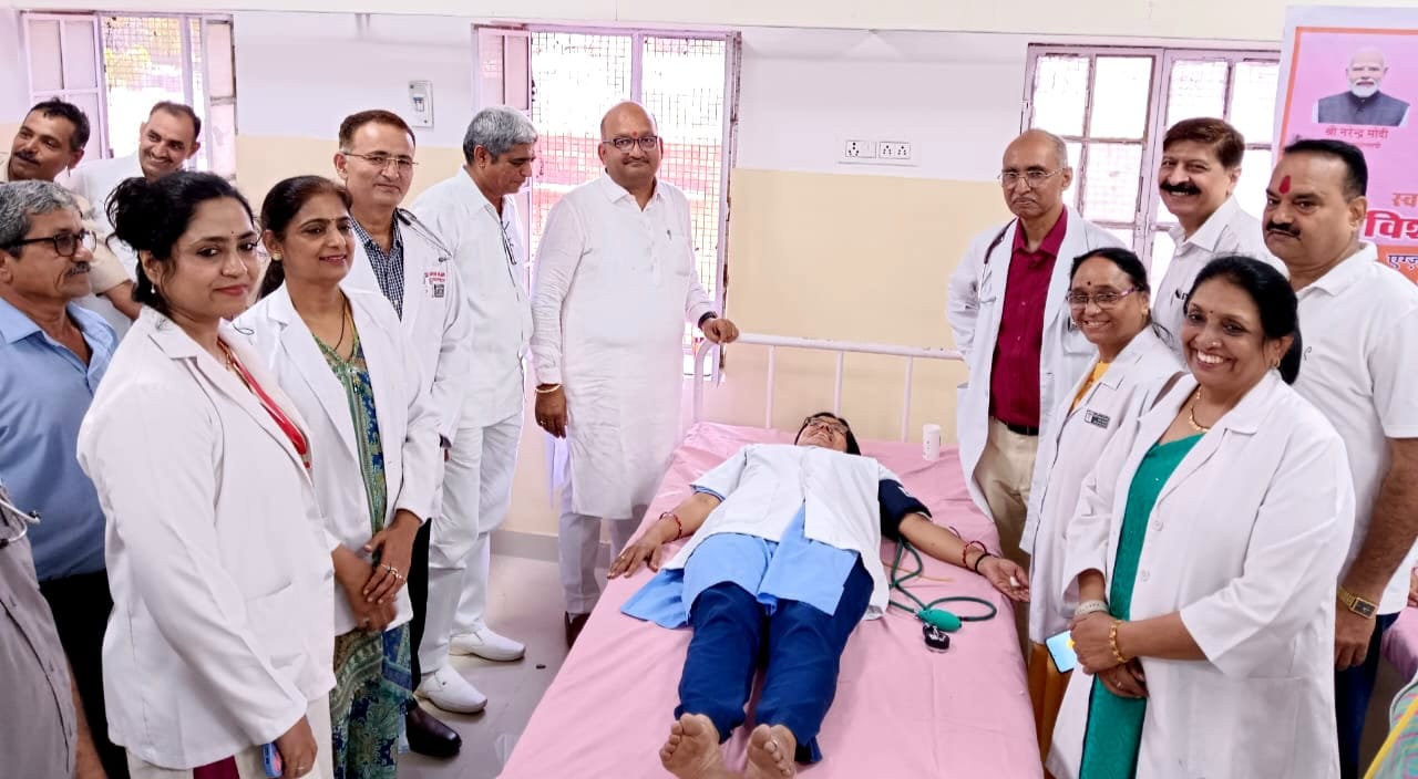 स्वस्थ नारी सशक्त परिवार अभियान के तहत ब्लड डोनेशन कैप लगाया