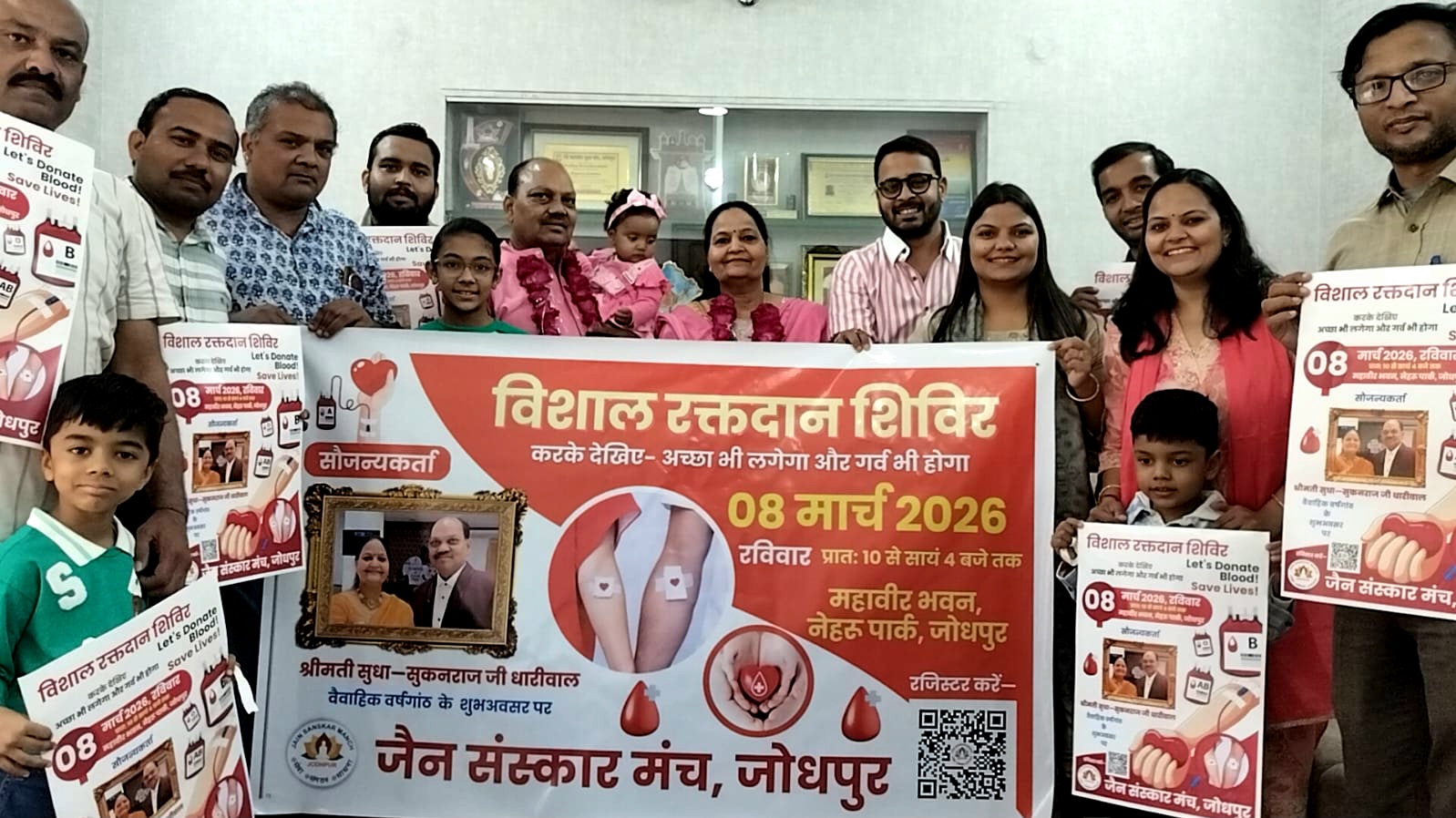 रक्तदान शिविर के बैनर एवं पोस्टर का विमोचन जोधपुर, रक्तदान शिविर के बैनर एवं पोस्टर का विमोचन। जैन समाज की…