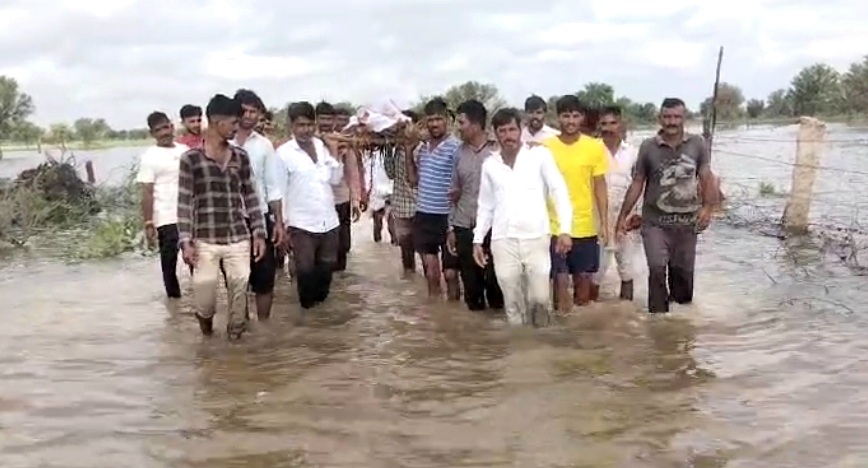 पानी के बीच निकाली अंतिम यात्रा दो किलोमीटर तक चले ग्रामीण, जगह-जगह जलभराव भारी बारिश बनी आफत जोधपुर(डीडीन्यूज),पानी के बीच…