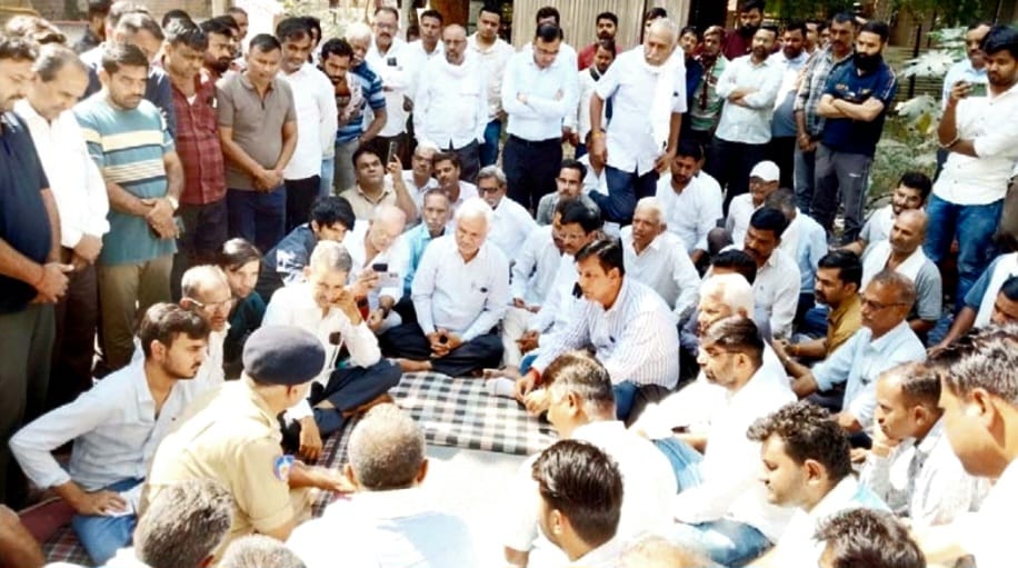 आरोपियों की गिरफ्तारी की मांग, सर्व समाज का एमडीएम मोर्चरी के बाहर धरना प्रदर्शन