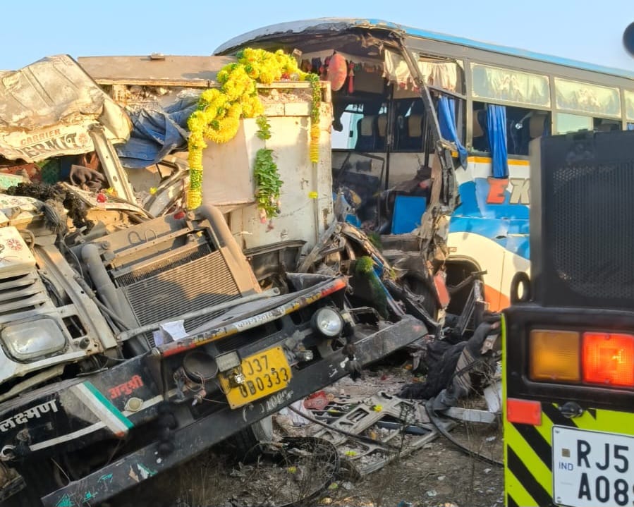- जोधपुर के केरू गांव में अरना झरना के पास बस ट्रेलर के बीच भीषण टक्कर