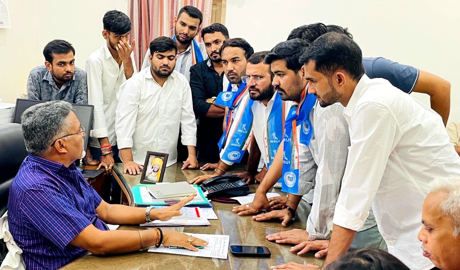 जेएनवीयू कुलसचिव कार्यालय में एनएसयूआई का प्रदर्शन