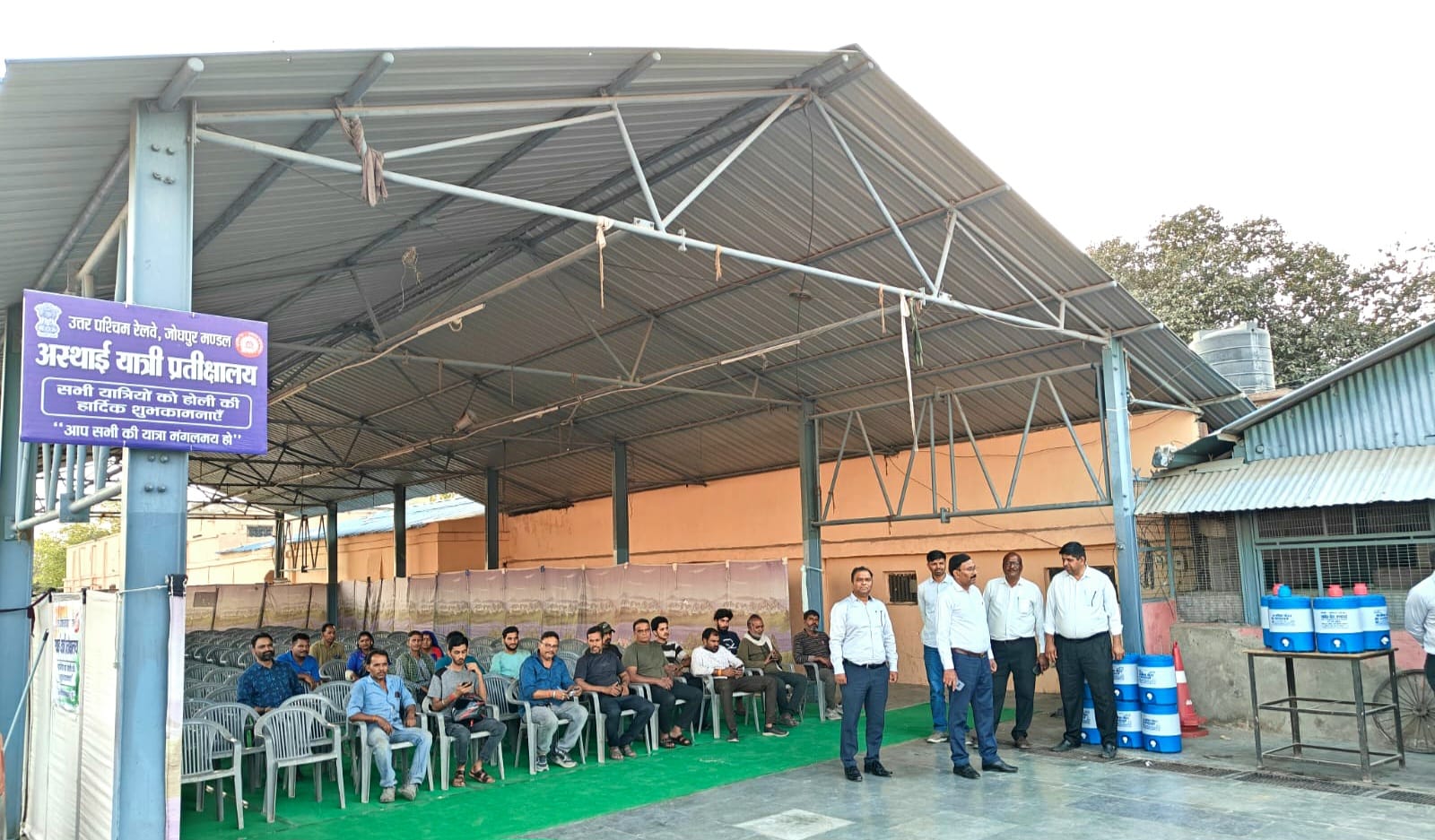 जोधपुर(दूरदृष्टीन्यूज),होली की भीड़ के मद्देनजर स्टेशन पर बना यात्री होल्डिंग एरिया। होली के त्यौहार के दौरान यात्रियों की बढ़ती भीड़ को देखते हुए जोधपुर रेलवे स्टेशन पर विशेष भीड़ प्रबंधन व्यवस्था की गई है। उत्तर पश्चिम रेलवे के जोधपुर डीआरएम अनुराग त्रिपाठी ने बताया कि होली पर्व के कारण यात्रियों की सुविधा एवं सुरक्षा को ध्यान में रखते हुए स्टेशन परिसर में अस्थाई होल्डिंग एरिया बनाया गया है।