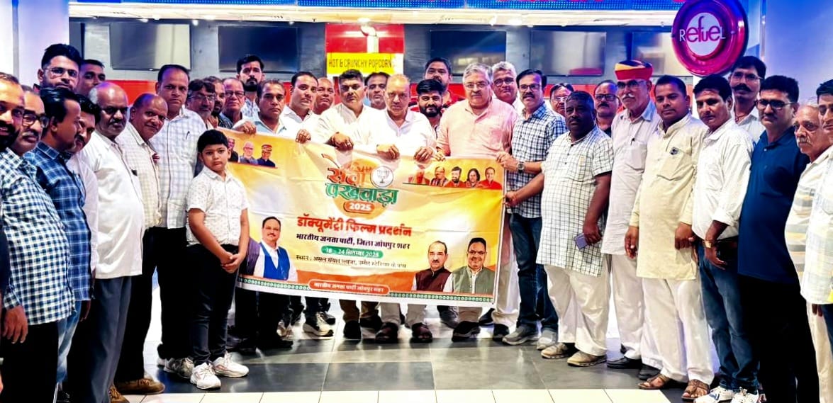 जोधपुर(डीडीन्यूज),जोधपुर में डॉक्यूमेंट्री फिल्म चलो जीते हैं का प्रदर्शन। प्रधानमंत्री नरेंद्र मोदी का 75वां जन्मदिवस सेवा पखवाड़ा 2025 के रूप में मनाया जा रहा है। इस अवसर पर भारतीय जनता पार्टी जोधपुर शहर जिलाध्यक्ष राजेन्द्र पालीवाल के सानिध्य में प्रधानमंत्री के जीवन से प्रेरित डॉक्यूमेंट्री फिल्म “चलो जीते हैं” का प्रदर्शन शहर के प्रमुख सिनेमाघर मिराज बायोस्कोप शास्त्री नगर,अंसल रॉयल प्लाजा सोजती गेट और ब्लू सिटी मॉल सर्किट हाउस में किया गया।