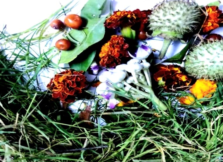 यही उपयोग दूध का यहाँ किया गया है, ताकि आक,धतूरा के विष को शोधित कर बेलपत्र के औषधीय उपयोग और बेर का मिठास,गेंदे के प्रतिरक्षक और अन्य गुणों को मिलकर तथा दूबघास जो खेत से बहुत मुश्किल से निकलती हे उसे इसके साथ यह एक सम्पूर्ण खेती के लिए प्रतिरक्षक मिश्रण बन जाता है,जो पूरे समाज द्वारा मंदिरों मैं इकठा किया जाता है,ताकि खेती या आयुर्वेद में इसका प्रयोग हो सके।