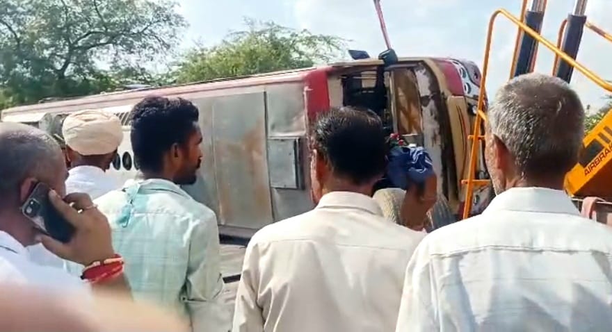 स्लीपर बस पलटी एक यात्री की मौत 35 घायल