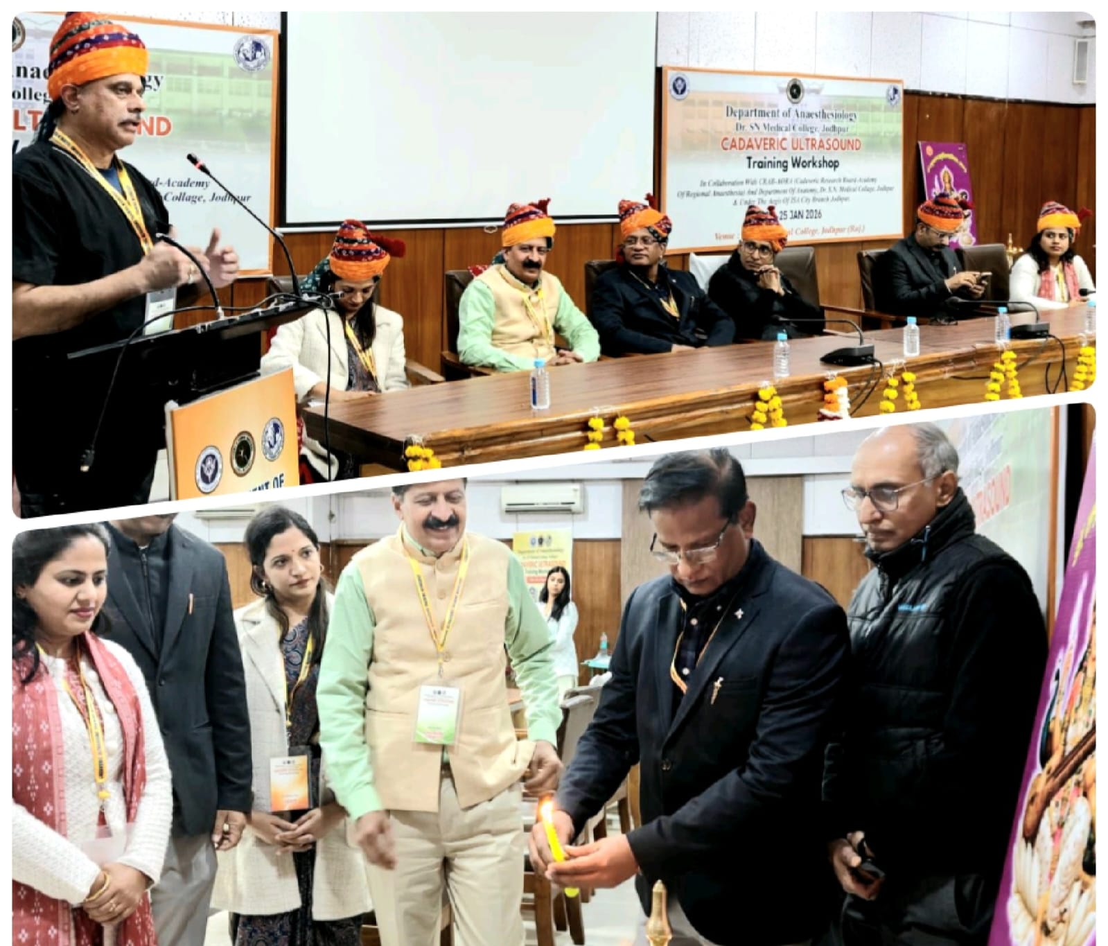 जोधपुर(दूरदृष्टीन्यूज),एनेस्थीसिया की बारीकियों का दिया प्रशिक्षण।डॉ एसएन मेडिकल कॉलेज में डिपार्टमेंट ऑफ़ एनेस्थीसिया द्वारा आईएसए जोधपुर सिटी ब्रांच के तत्वाधान में अल्ट्रासाउंड-गाइडेड रिजनल एनेस्थीसिया पर आधारित एडवांस कैडेवेरिक कार्यशाला का 24 -25 जनवरी को आयोजन किया गया। इस वर्कशॉप में युवा एनेस्थीसियोलॉजिस्ट,प्रशिक्षु और चिकित्सीय विशेषज्ञों ने भाग लिया।