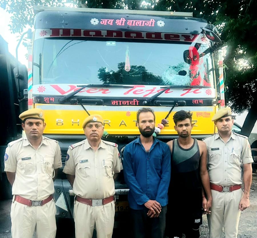 पुलिस आयुक्त ओमप्रकाश,डीसीपी वेस्ट विनीत कुमार बंसल के निर्देशानुसार एवं एडीसीपी वेस्ट रोशन मीना,एसीपी बोरानाडा आनंद सिंह राजपुरोहित के सुपरविजन और लूणी थानाधिकारी डॉ.हनवंत सिंह राजपुरोहित के नेतृत्व मेें गठित टीम ने कार्रवाई करते हुए बजरी डंपर के साथ मंगेरिया भोपालगढ़ निवासी कानाराम पुत्र महादेव राम जाट एवं राजीव नगर ए आरटीओ के पास रहने वाले मुकेश पुत्र शेरा राम जाट को गिरफ्तार किया है। मुकेश के खिलाफ नागौर और बाड़मेर में भी बजरी चोरी का प्रकरण दर्ज हैं।