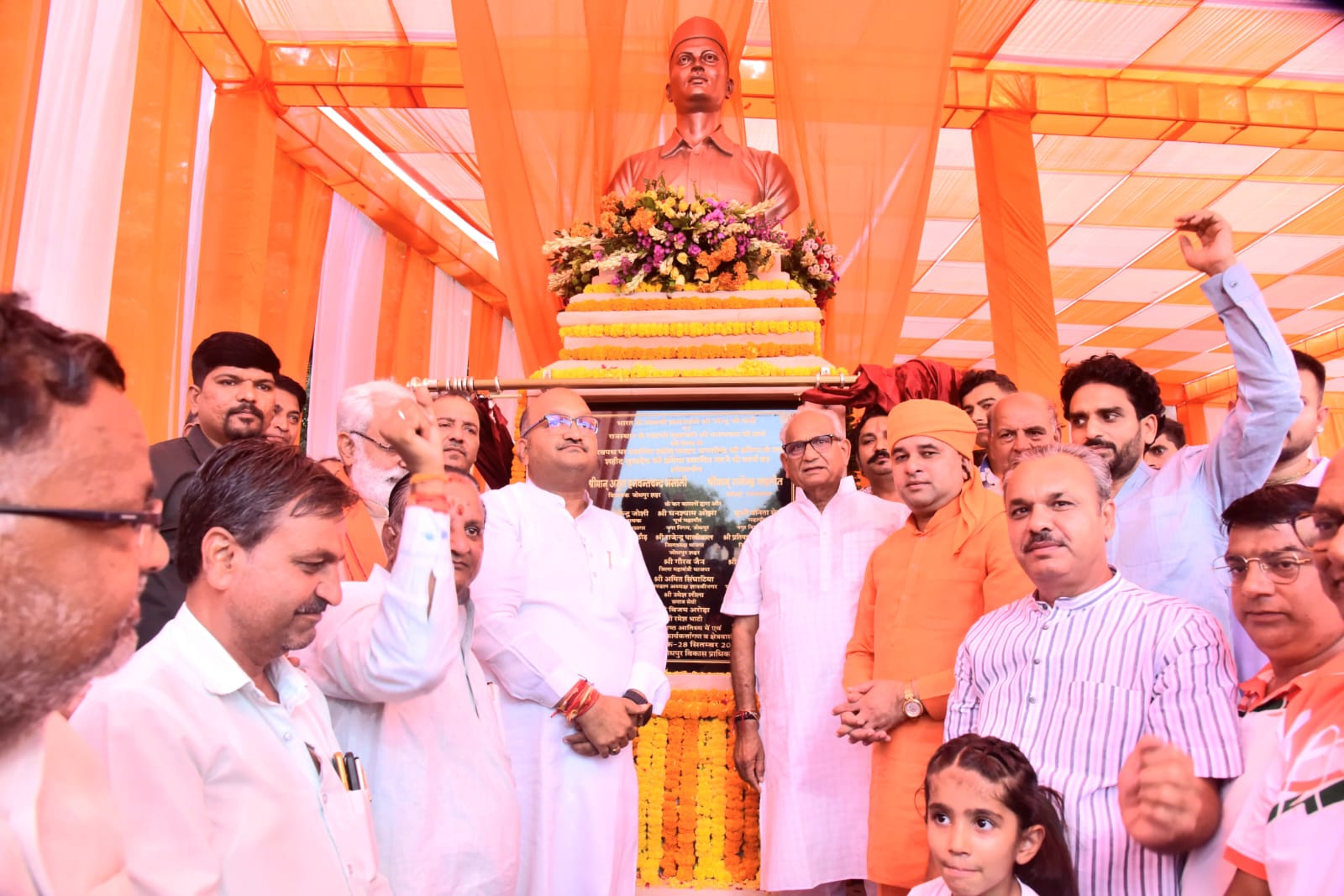 अमर शहीद भगत सिंह की जयंती पर शहीद सुखदेव व राजगुरु की प्रतिमा का अनावरण